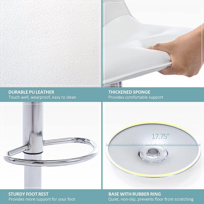 - [ Stable & Safe ] Solid wood seat frame, high quality gas lift, sturdy metal pole and large base (diameter is 17.75"), makes this barstool more stable and durable, also assures seating safety. Max weight capacity is up to 300 lbs. Base with plastic ring, antislip and prevents floor from scracthes.