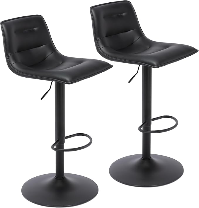 Brage Living Adjustable Bar Stools Set of 2, Modern PU Leather Swivel Counter Height Barstools with Back, Armless Airlift Curved Bar Chairs for Kitchen Dining Cafe (Black, Black Base)