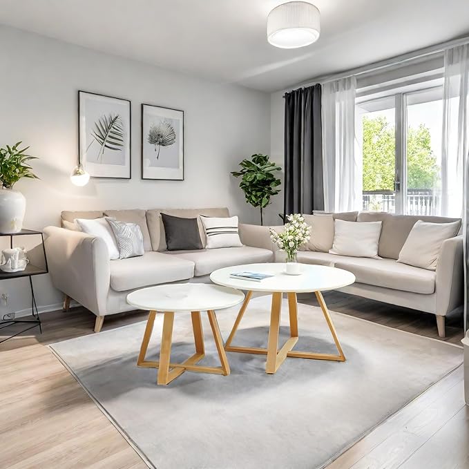 - 【Stylish and Functional】: This design of center livingroom side tables set of2 adds a touch of elegance to your space, while the white finish and the wood legs bring a modern and clean look. These unique coffee tables will enhance your home decor effortlessly.