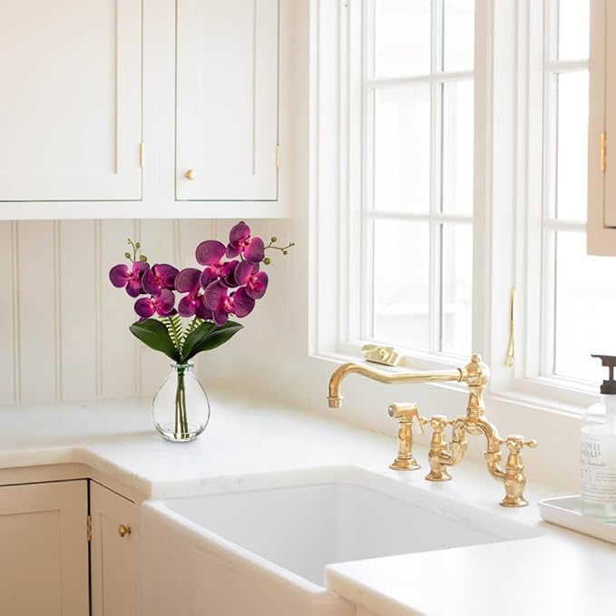 - Artificial Orchids for Decoration - The purple artificial flowers in vase are perfect decoration to your office, shelf, bathroom, living room, bedroom, window, table centerpieces, dining room, side table, cabinet, desk, bedside nightstand, kitchen, foyer, hotel, etc. It also can be used as a centerpiece for weddings, parties, or seasonal celebrations, adding a natural and sophisticated touch to any setting