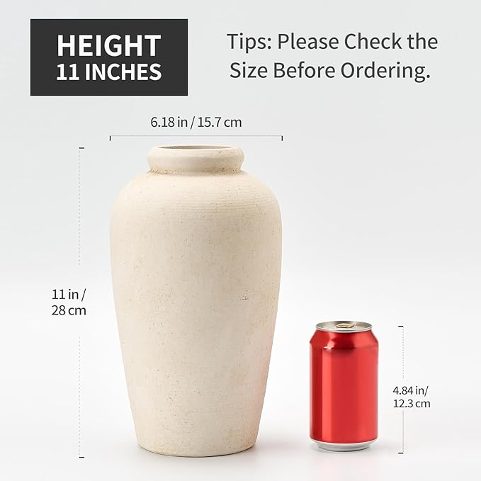 - 【Versatile Decor Piece】The terracotta vase measures 11" height and 6.18" width. Perfect for fresh or dried flowers. Effortlessly elevate the aesthetics of any room -be it your living room, kitchen, bedroom,bathroom, or office-with our product. It seamlessly blends with various decor styles,including boho, rustic,modern farmhouse,and cottagecore.For an extra pop of color, simply add your favorite faux or fresh flowers.