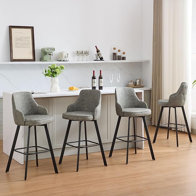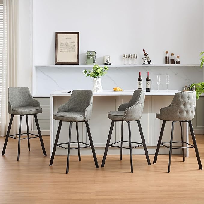 Bar Stools Set of 4, 30" Swivel Bar Height Bar stools with High Back, Faux Leather Kitchen Barstools Bar Height for Kitchen Island (Light Grey, 4PCS 30" Bar Stools)
