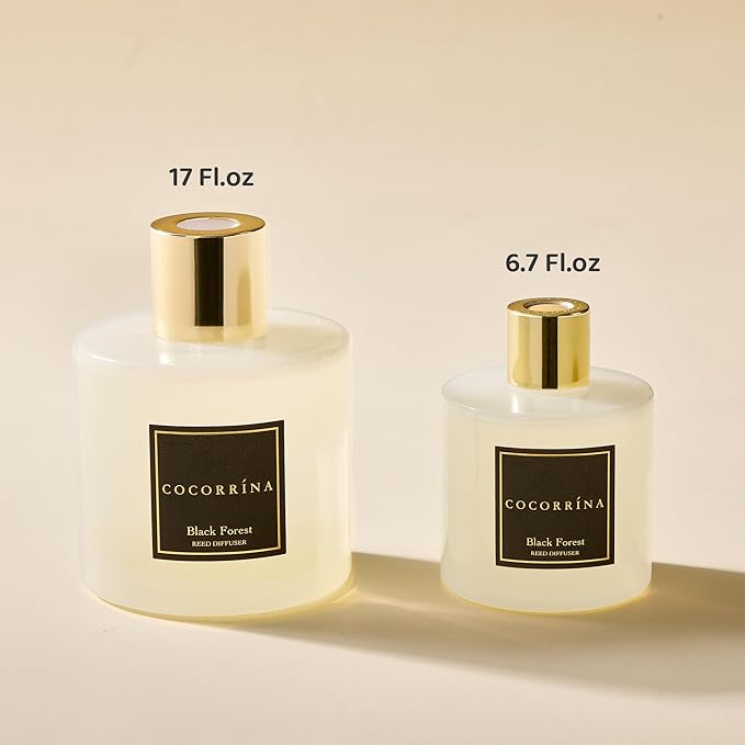 COCORRÍNA Reed Diffuser - Black Forest 17 Fl.oz Reed Diffuser with 8 Sticks Scented Diffuser with Preserved Flowers for Bathroom Home Decor