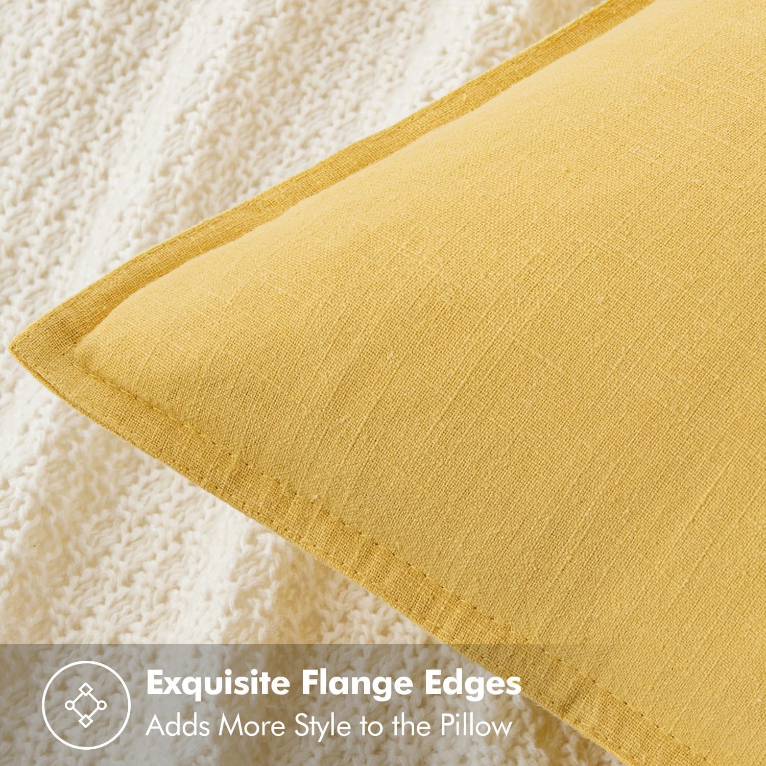 MIULEE Decorative Linen Pillow Covers 18x18 Inch Yellow Boho Farmhouse Neutral Couch Throw Pillows for Bed Pack of 2 Accent Modern Pillowcase Summer Sofa Livingroom Home Decor