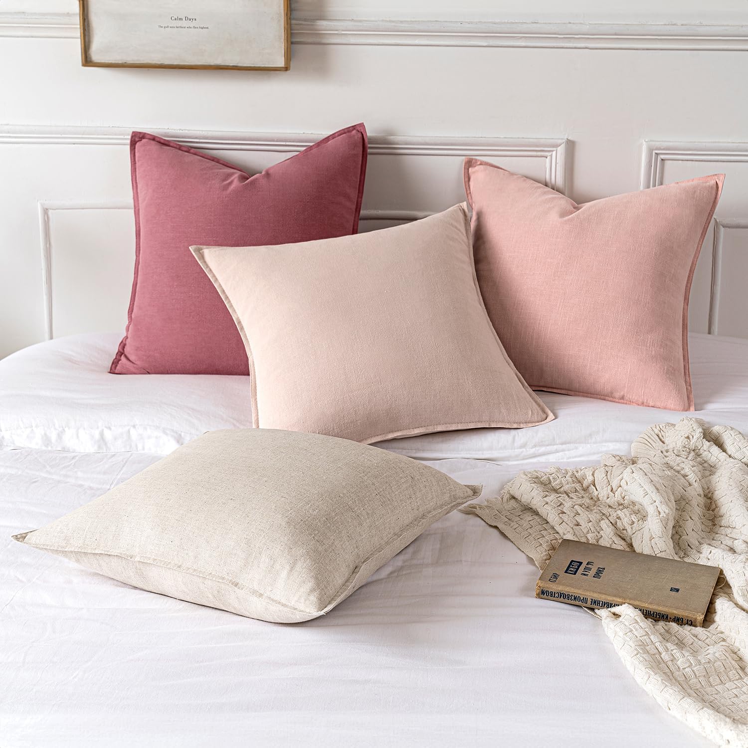 MIULEE Decorative Linen Pillow Covers 20x20 Inch Pink Boho Farmhouse Neutral Couch Throw Pillows for Bed Pack of 2 Accent Modern Pillowcase Sofa Livingroom Home Decor