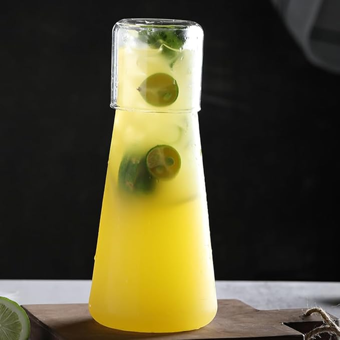 - Elegant Design with Practical Functionality: Featuring a modern, minimalist design, this bedside water carafe set comes with a sealing lid that protects your water from dust , keeping your water throughout the night.
