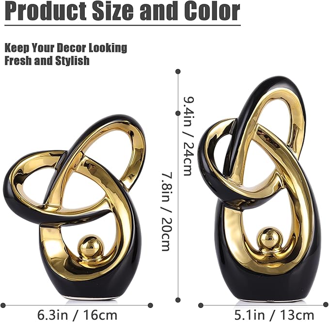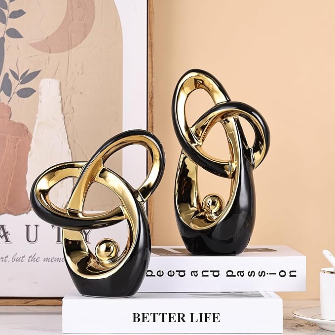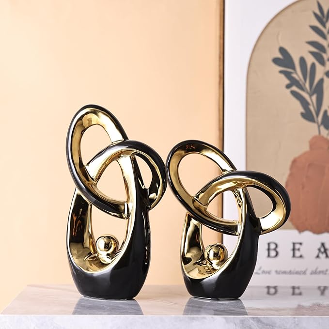 Black Gold Modern Abstract Art Home Decor Accent,Statues Coffee Table Decor for Living Room,Table Centerpieces for Dining Room,Ceramic Sculptures and Gold Knick Knacks for TV Stand Decor (Black Gold)