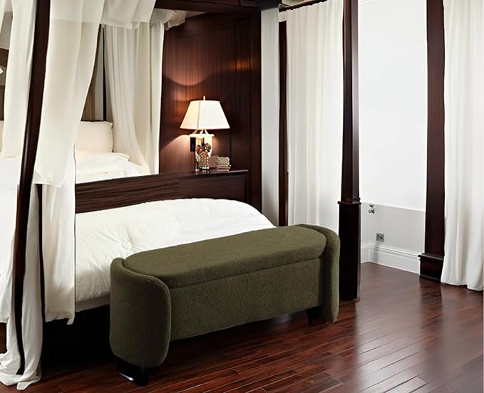 - 【Premium Materials】Our bedroom end of bed cozy upholstered stool has a combination of high quality, soft, skin-friendly cushions and a sturdy frame (made of soft skin-friendly teddy fabric, as well as interior materials made of hard solid wood). It provides you with soft, comfortable and sturdy long-term storage space.