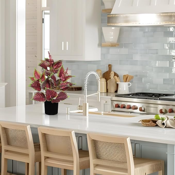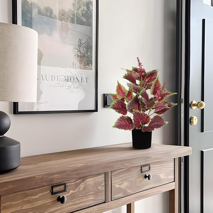 - Artificial Plants Indoor - Our lifelike perilla plant features silk leaves showcasing a vibrant green to burgundy gradient, enhanced by precise veining and naturalistic serrated edges. Each leaf mimics fresh growth with delicate color variations and glossy finishes, while 23 densely arranged foliage layers create a lush, organic silhouette. The subtle inclusion of slender flower stems adds botanical depth, perfect for adding lively elegance to any space, offering a touch of nature