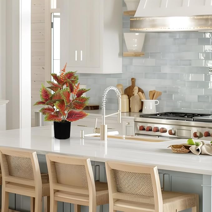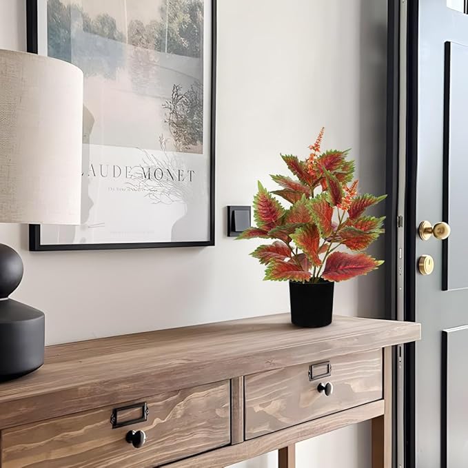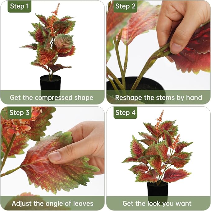 - Artificial Plants Indoor - Our lifelike perilla plant features silk leaves showcasing a vibrant green to rich red gradient, enhanced by precise veining and naturalistic serrated edges. Each leaf mimics fresh growth with delicate color variations and glossy finishes, while 23 densely arranged foliage layers create a lush, organic silhouette. The subtle inclusion of slender flower stems adds botanical depth, perfect for adding lively elegance to any space, offering a touch of nature