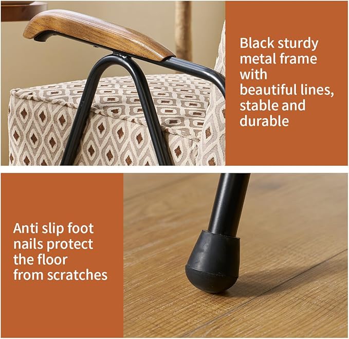- 【Solid and High-Quality】Our accent armchair not only making it look stylish and modern but also increasing its overall sturdiness. The chair is crafted from metal frame, resilient foam fill, and high-quality upholstery fabric, with a high weight capacity of 350 lbs.