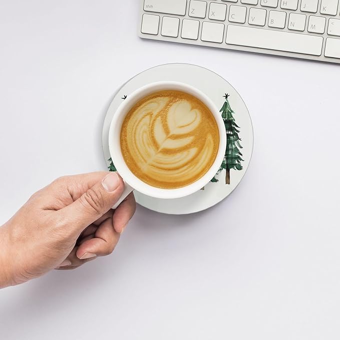 Christmas Xmas Tree Coasters for Drinks Absorbent Ceramic Coaster Set of 4 for Coffee Table Cup Bar Coasters with Cork Base Round Stone Mats Holiday Housewarming New Home Decors