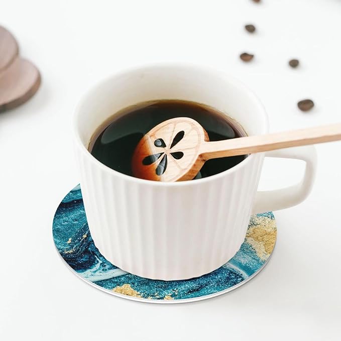 Ocean Gold Blue Marble Coasters Set of 6 Coasters for Drinks Absorbent Double-Sided Leather PVC Coaster for Tabletop Protection Coffee Table Decor Ideal for Home Decor House Warming Gifts