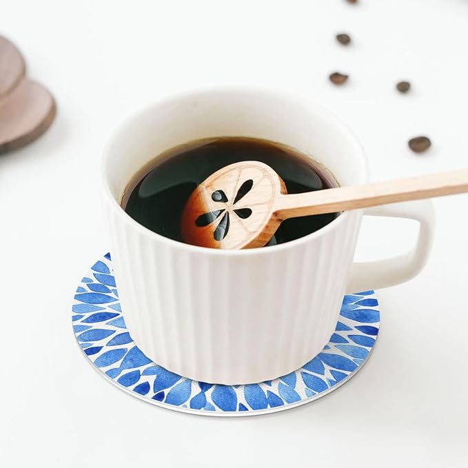 Blue Watercolor Flower Petals Coasters Set of 6 Coasters for Drinks Absorbent Double-Sided Leather PVC Coaster for Tabletop Protection Coffee Table Decor Ideal for Home Decor House Warming Gifts