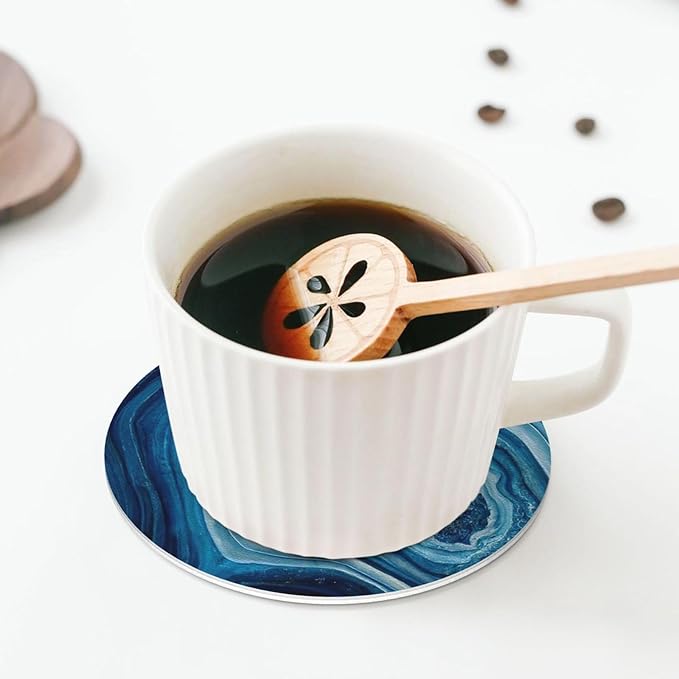 Agate Marble Blue Coasters Set of 6 Coasters for Drinks Absorbent Double-Sided Leather PVC Coaster for Tabletop Protection Coffee Table Decor Ideal for Home Decor House Warming Gifts