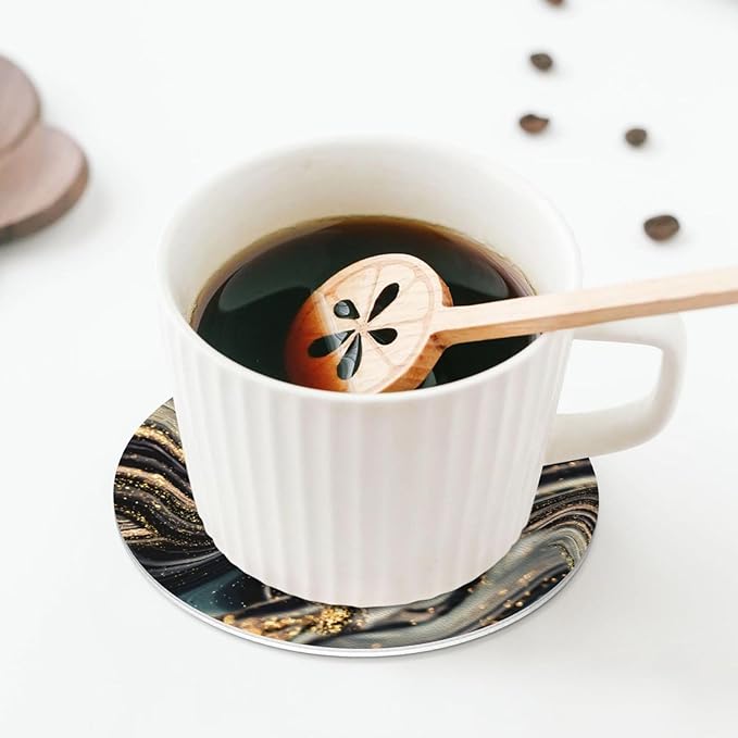 Black Gold Marble Style Coasters Set of 6 Coasters for Drinks Absorbent Double-Sided Leather PVC Coaster for Tabletop Protection Coffee Table Decor Ideal for Home Decor House Warming Gifts