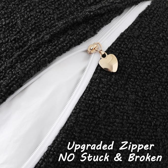FUTEI Pack of 2 Black Decorative Throw Pillow Covers 18x18 Inch Soft Cozy Solid Boucle Textured Cushion Case,Modern Home Decor for Couch Bed Living Room