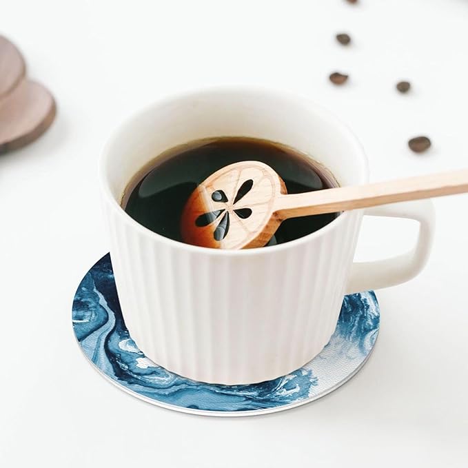 Blue Ocean Marble Coasters Set of 6 Coasters for Drinks Absorbent Double-Sided Leather PVC Coaster for Tabletop Protection Coffee Table Decor Ideal for Home Decor House Warming Gifts