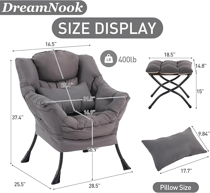 - 【ROBUST & RELIABLE】: Built on a sturdy steel frame, this lazy chair provides exceptional support, accommodating up to 400 lbs. Feel secure as you relax on our sofas, thanks to the non-slip foot cover that prevents sliding and protects your floors from scratches.