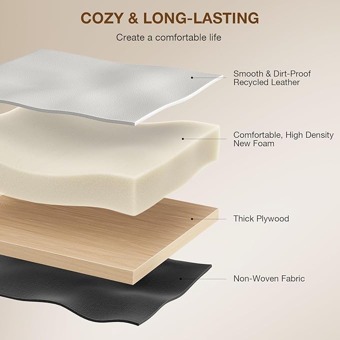 - 【Elegant Saddle Stool】The Memobarco makeup stool features premium 3mm synthetic leather upholstery for easy cleaning, with a 3.5-inch high-resilience foam cushion that delivers ergonomic comfort, and all-day relaxation.