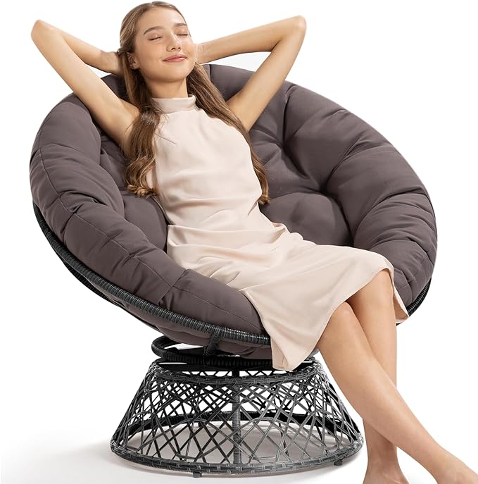 - 360-DEGREE SWIVEL: Built with sturdy metal frame and resin wicker, this big round chair features smooth 360-degree rotation and adjustable levelers for stability; Designed as a reading chair for adults, it’s ideal for multitasking or gaming