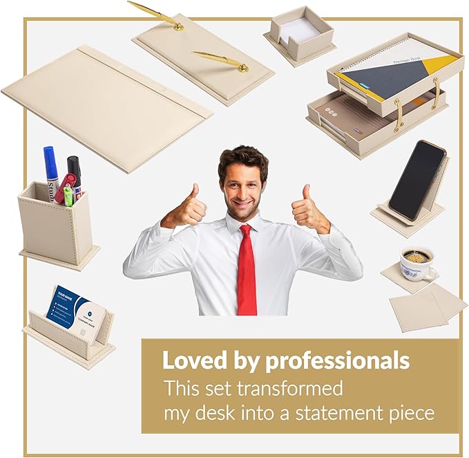 MOOGCO Luxury Leather Desk Pad & Desk Organizer Set, Bonded Leather