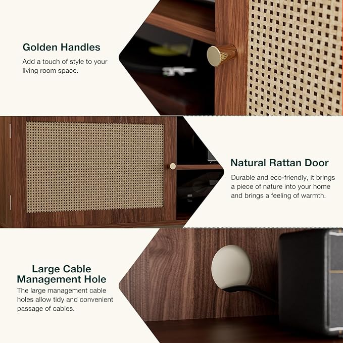 - TV COMPANION: Rattan-decorated doors match the natural surface, this TV stand with storage blends modern and boho style. If your living room is calling for a new upgrade with storage, this TV stand is a great addition