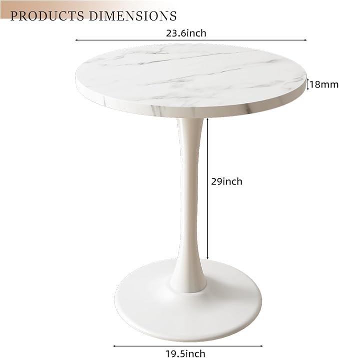 - Size:Our round table desktop diameter is 23.6 inch, height is 29 inch, Suitable for 1-2 people.