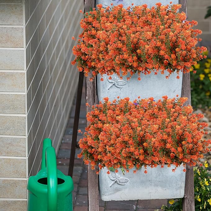 Outdoor Artificial Flowers UV Resistant, 20 Bundles Fake Realistic Floral Greenery Plants for Outside Porch, Window Boxes, Garden, Yard, Inside Home Table Decor,GreenOrange