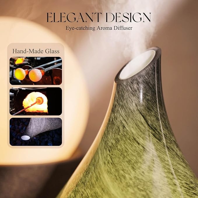 - UNIQUE ART DECOR - 280ml glass essential oil diffuser with star-shaped glass cover & wood grain base. Adds artistic harmony to your living space, perfect for bedrooms, living rooms, kids' rooms, studies, offices, & yoga studios. Enhances ambience