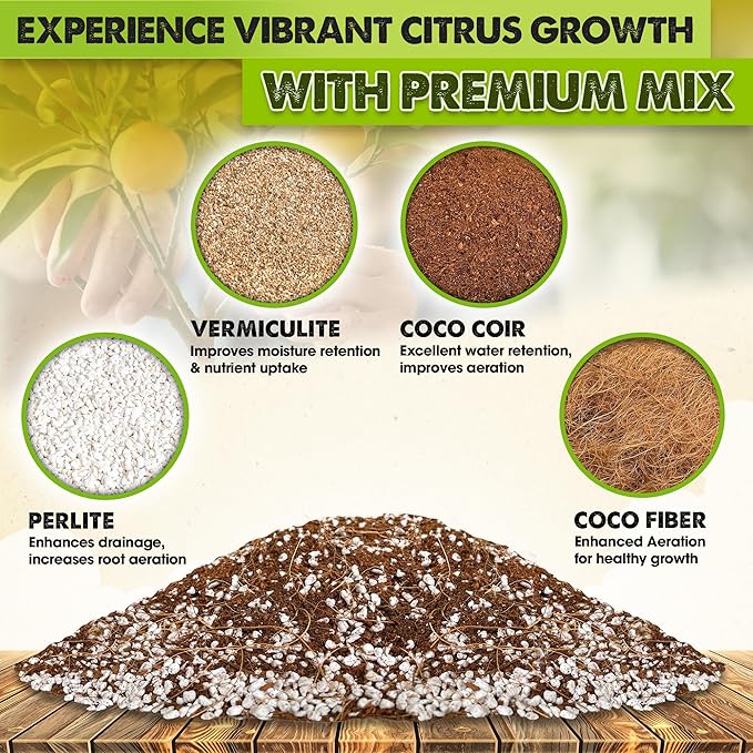 - 🍋 𝐄𝐗𝐏𝐄𝐑𝐓𝐋𝐘 𝐅𝐎𝐑𝐌𝐔𝐋𝐀𝐓𝐄𝐃: This mix contains the perfect ratio of nutrients for citrus to thrive. It provides excellent drainage, suitable pH level, and breathability, creating the ideal growing environment for your plants.