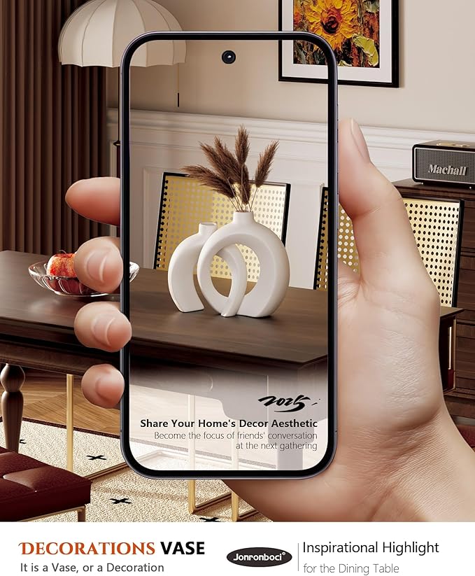 - 【Ideal Medium Size Donut Shape Decorative Vases for Any Space】This set of 2 decorative vases includes a large vase (H8.9 inch) and a small vase (H7.2 inch). The ceramic vases are the perfect size for use as centerpieces on your coffee table decor, dining table decor, or entryway table decor. With their unique donut shape, these modern vases create a stylish focal point in any room, whether placed individually or together, ideal for home decor for living room decor or bedroom decor.