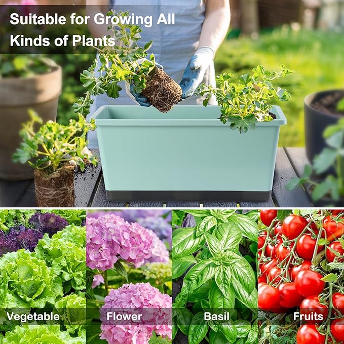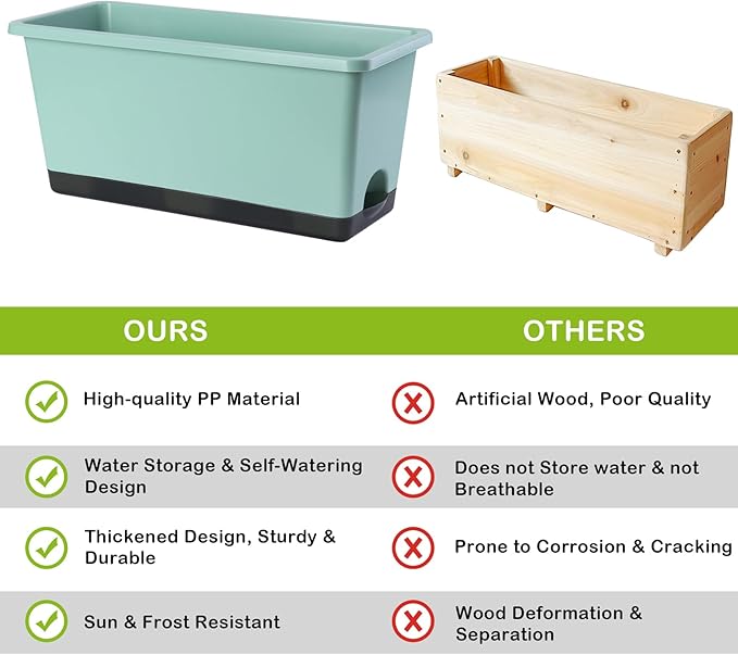 - 【Premium & Durable】The planter pots are made of high quality PP material and has been thickened to bear up to 300KG (660LB). This window box planter is sturdy, wear-resistant and durable. It can be exposed to light, wind, and sunlight for long periods of time, with a lifespan of decades. It is an excellent planter box for both indoor and outdoor.