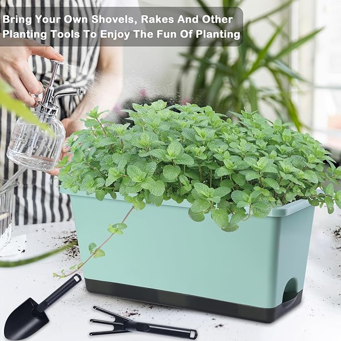 - 【Self Watering Plant Pots】Our Plant Pots are set of 6 pieces, and the size of the pot is about L17 x W7.4 x H7.8 inches, it is large enough to support any projects and ideas. Please note that plants in the images are not included! Perfect for growing all kinds of plants, like herbs, flowers, foliage, grass, cactus, succulents, ferns, arborvitae and more.