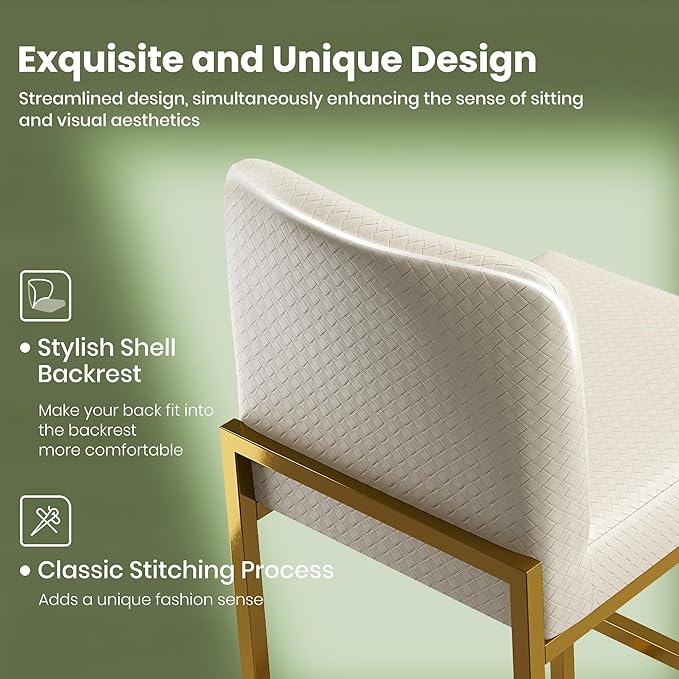 - 【Premium Quality Materials】: Crafted from high-quality materials, these barstools are built to withstand daily use. The sturdy frame ensures stability and durability, while the cushioned seat offers plush comfort. With a scratch-resistant seat surface, our barstools can withstand daily use without showing signs of wear and tear, maintaining their pristine appearance for years to come.