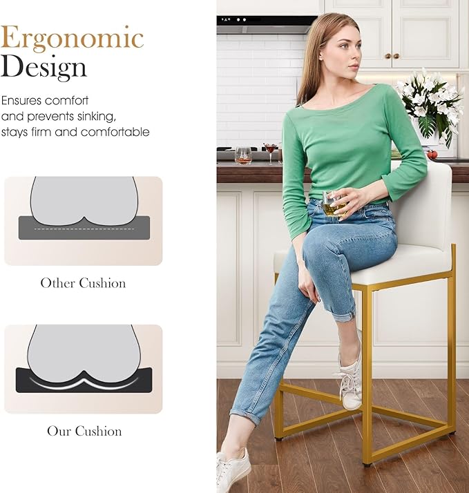 Sophia & William White and Gold Bar Stool,Counter Height Bar Stools for Kitchen Island,Bar Stools with Back, 24 Inch
