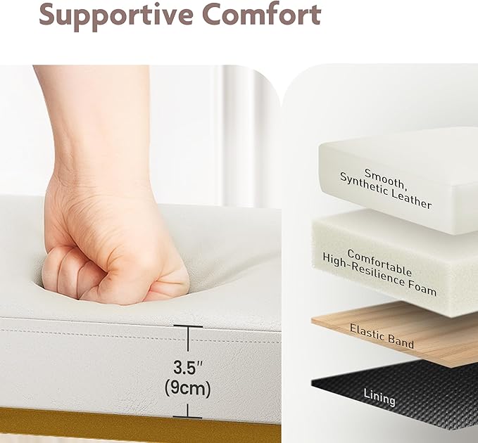 - [Upholstered PU Leather Seat]: The kitchen counter stools feature a retro matte leather surface that efficiently prevents water and stains, making cleaning easy. The 3.54" thick upholstered seat design with a soft backrest ensures a cozy seating experience. Upgrade your dining area now use our stylish counter height bar stools!
