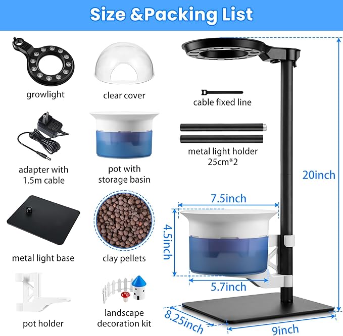 - · Versatile for Multiple Plant Types: This system is perfect for a variety of plants, including succulents, mosses, venus fly trap, Carnivorous Plant pots, and small indoor herb vegetable garden setups. It accommodates plants up to 35 cm, making it ideal for venus fly trap terrariums with grow light or other small indoor plant types, come with clear dome, you could see your own mini landscape, it could be a Aquarium grow light & self sustaining ecosystem