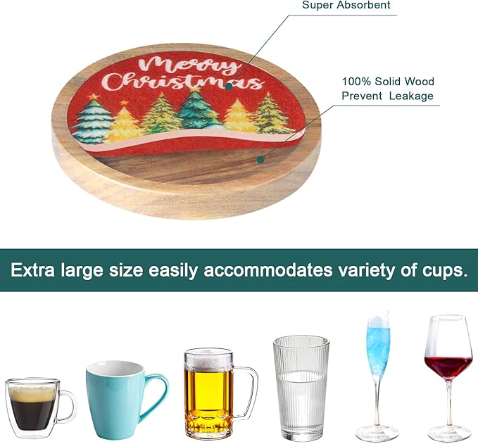 - 🎁Super Absorbent Coasters: Cup coasters with built-in thickened felt pads for stronger water absorption and heat insulation, capture liquids quickly were prevent any spills, keeping your tabletop clean and tidy, with no stains and water rings; extra large size easily accommodates cups of all sizes.