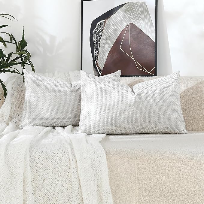 Stellhome Pack of 2 Woven Textured Decorative Throw Pillow Covers Soft Chenille Accent Luxury Cushion Cases for Living Room Couch Bed Sofa Farmhouse Boho Home, 12x20 inch, Light Grey