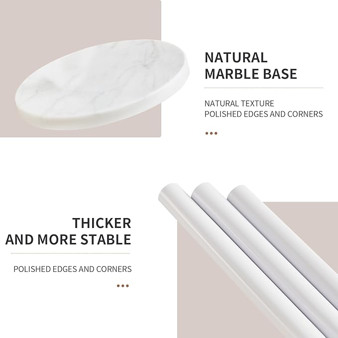 - 100% NATURAL MARBLE BASE:The metal coat racks is made of 100% natural marble. It carefully selected natural marble, each piece is a unique vein carved by nature, very strong and not shaking