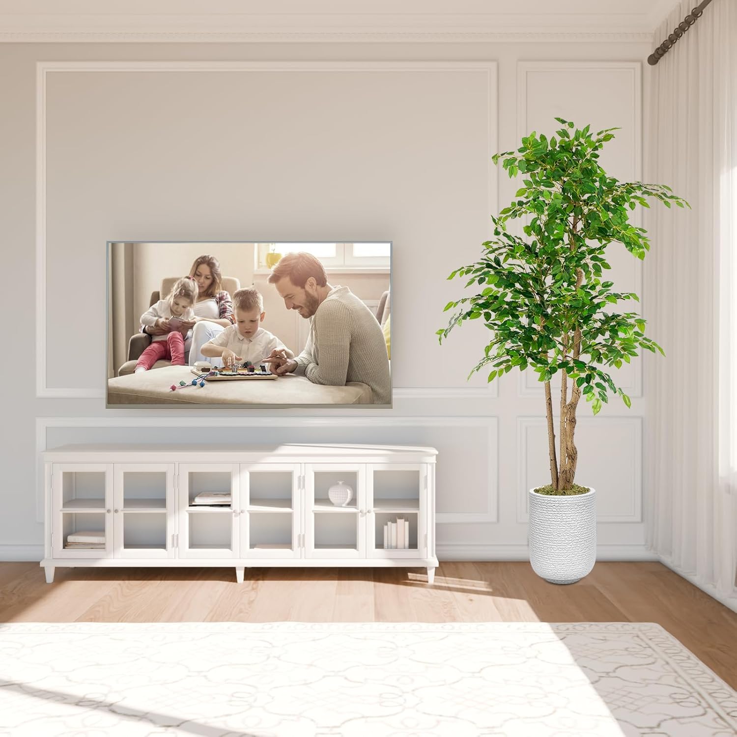 Ficus Tree Artificial with 3 Trunks, 6ft Fake Ficus Tree in White Magnesium Pot, Tall Artificial Tree Potted Plant for Indoor Outdoor Home Office Living Room Patio Bedroom Decor