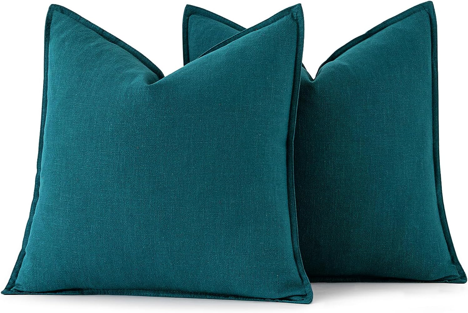 MIULEE Decorative Linen Pillow Covers 18x18 Inch Teal Blue Boho Farmhouse Neutral Couch Throw Pillows for Bed Pack of 2 Accent Coastal Modern Pillowcase Summer Sofa Livingroom Home Decor
