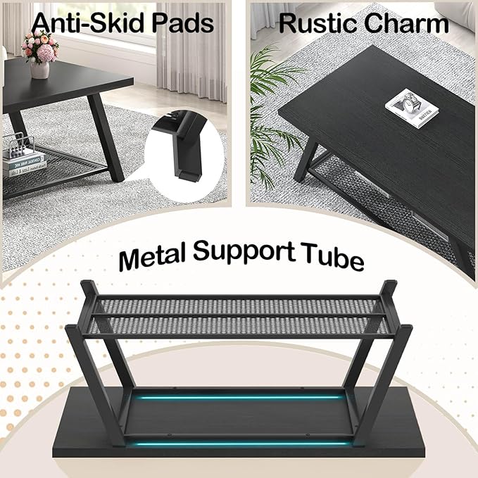 - Quick Assembly: Includes all hardware and detailed illustrated instructions for a hassle-free setup. This black coffee table is easy to assemble in 10 minutes, offering convenience and a modern design that enhances living room or office spaces