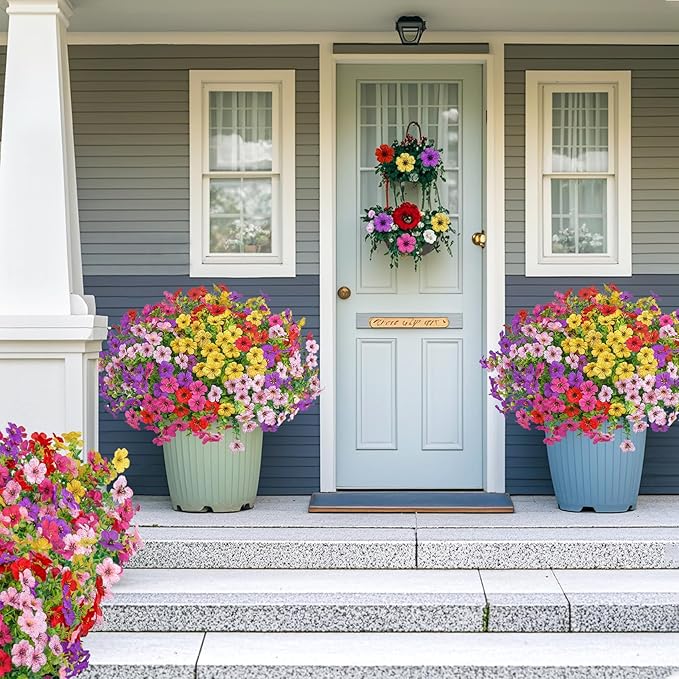 - Widely Applicable: The artificial flowers for outdoors are UV resistant and not easily fade, can be put outside, front porch, yard, veranda, balcony, garden; also ideal for living room, bedroom, office, or events like weddings, parties, DIY projects, etc