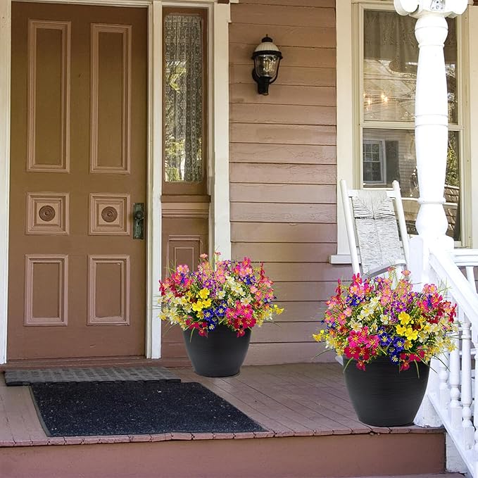 - MULTIPLE APPLICATIONS: Beautiful artificial outdoor plants are suitable for home, garden, porch, patio, window box, indoor and outside decorations, also can decorate your wedding, party or any event for a lovely floral bouquet accent