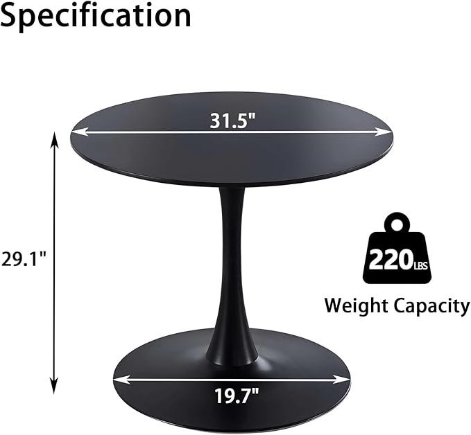 - 🌷[Space-Saving Friendly] - Our black dining table desktop diameter is 31.5 inch,height is 29.1 inch. This tulip table comfortably seats 2 people and can fit up to 4, The chassis was widened to a diameter of 19.7 inches, making the table more load-bearing while saving more floor space.
