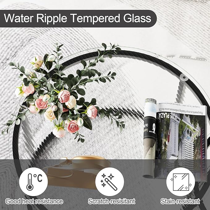 - ✔BEAUTY & STURDY:The surface of the glass table has a unique texture,adding a stylish vibe to the living room.Its simple, smooth line design and glass material complement each other, and can be easily integrated into a variety of modern decoration styles.