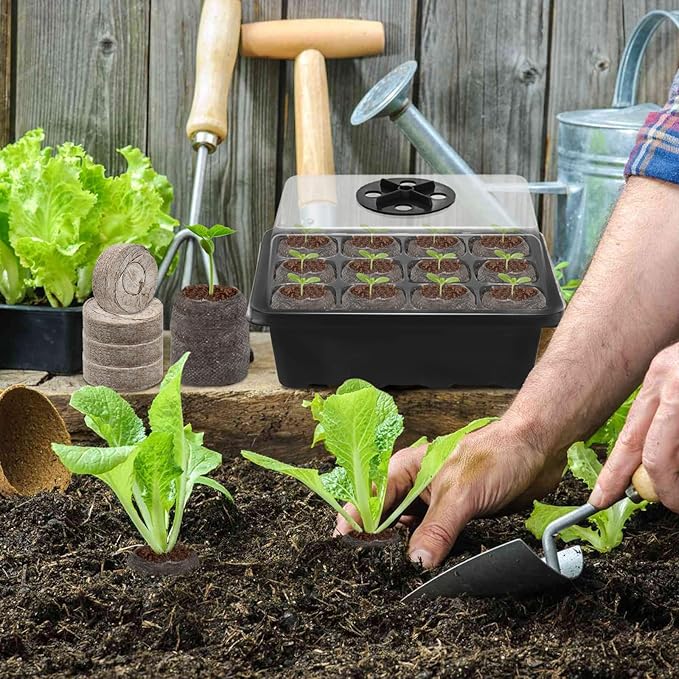 - 【High Quality Material】The black seed start trays are made of thick plastic, sturdy and durable, holds up to multiple uses, easy to wash and dry, the seed soil is made of peat and degradable non-woven fabric, safe and eco-friendly, make plant quickly sprout and grow.