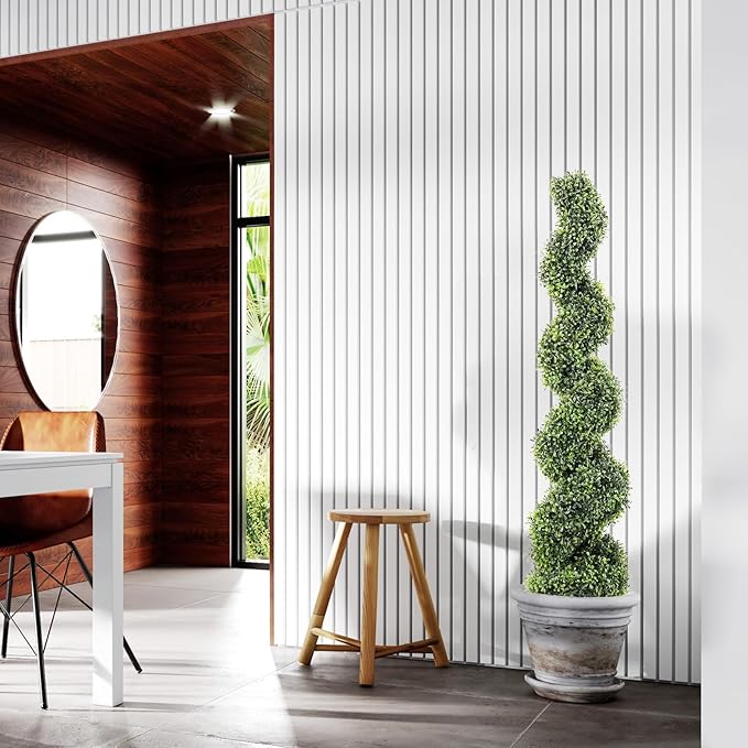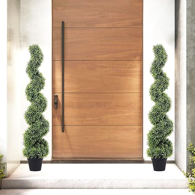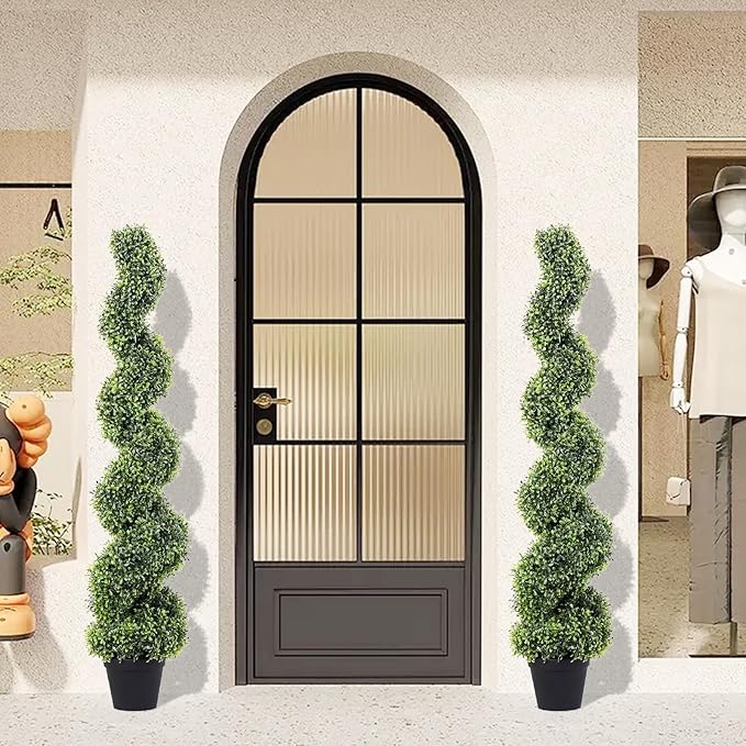 - 【Unique & spiral design is real and lush】COMUSTER artificial green tree planting is designed into an attractive spiral shape, which adds ingenious attraction to your space. More importantly, the lush and dense leaves have delicate textures and green colors, creating a more natural and realistic appearance. This set includes two 4FT trees.